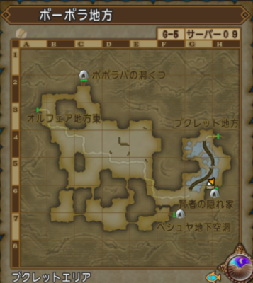 | ポーポラ地方 | バシっ娘で「プクランド大陸」⇒「賢者の隠れ家」に飛んで目の前の湿地帯。G-5付近。 釣り場までとっても近い。 |